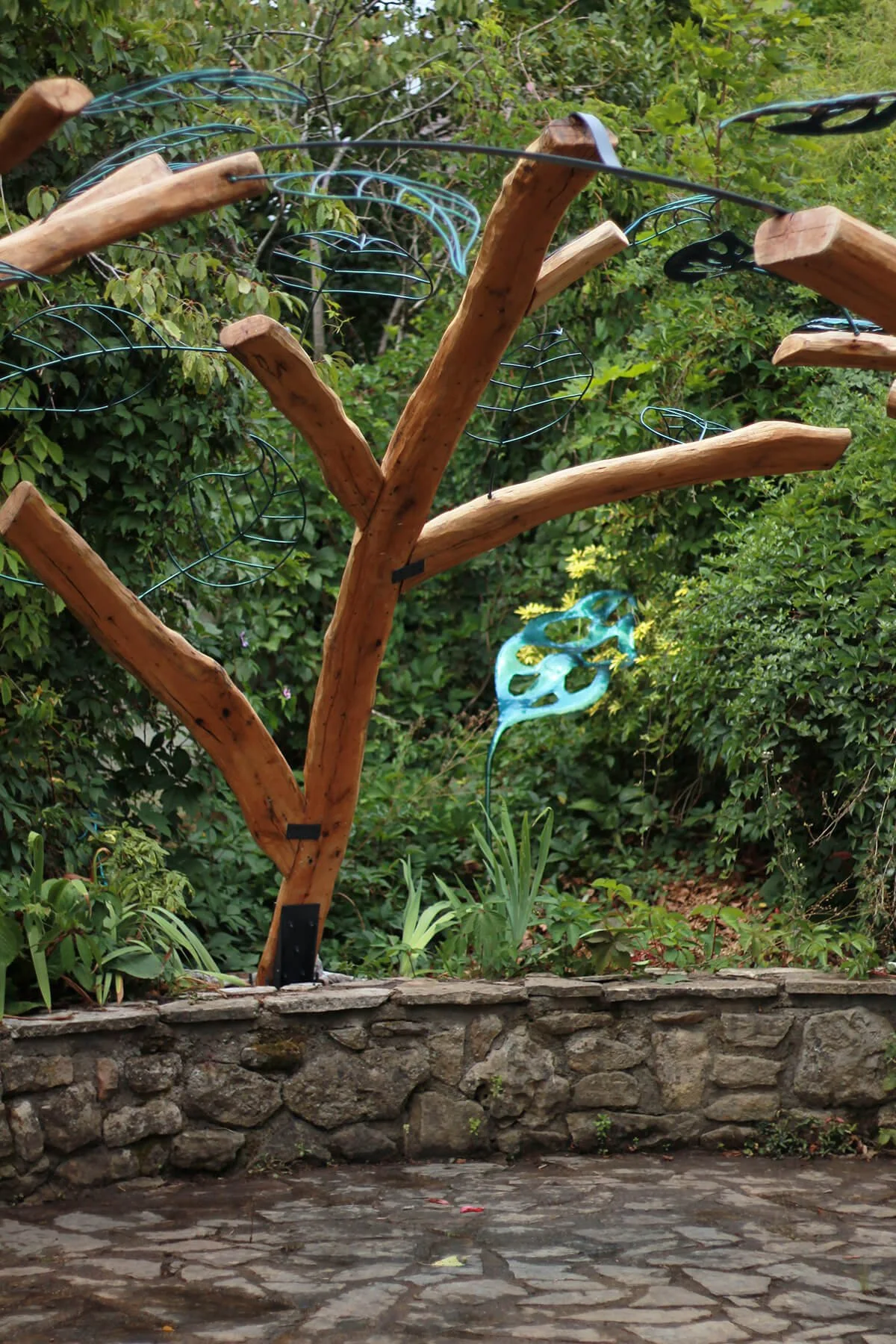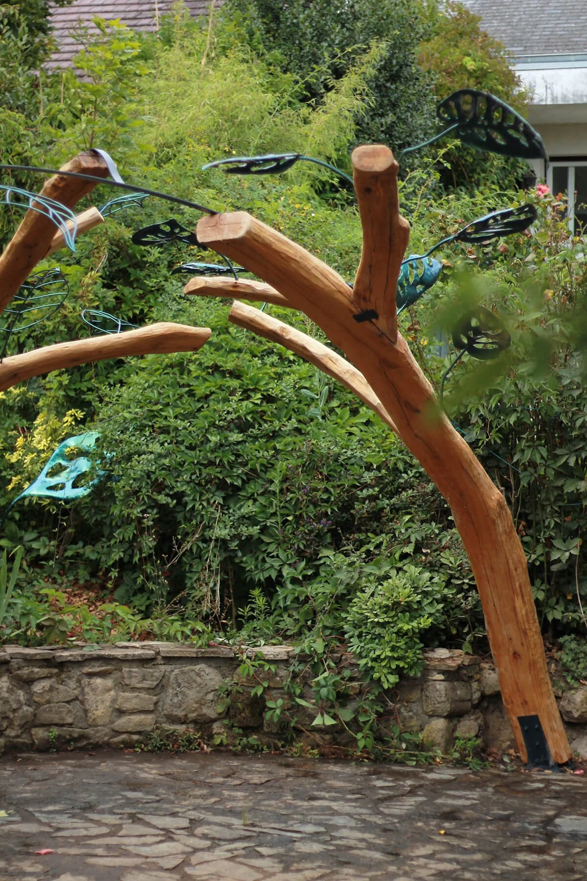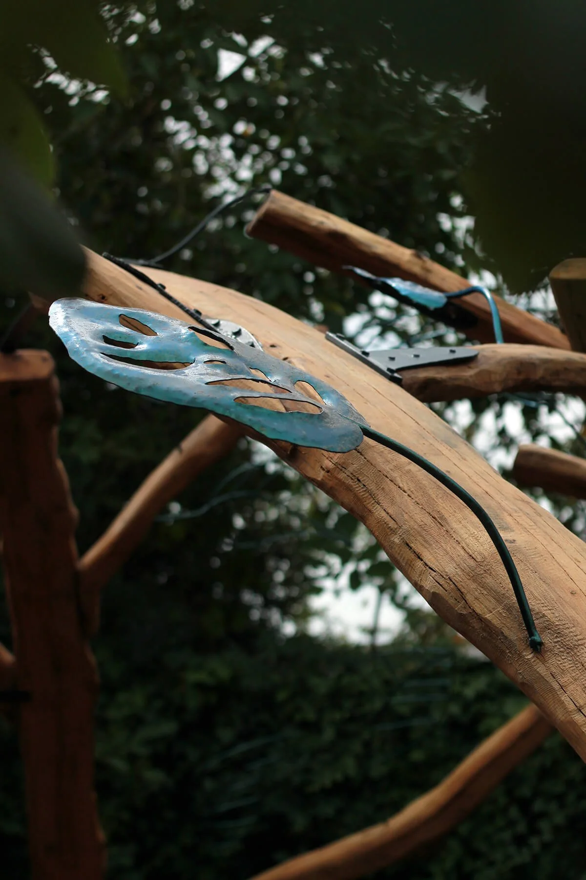 Les feuilles quant à elles sont réalisées en tôle et en rond d’acier, façonnées à la main, et mêlant différentes techniques de mise oeuvre traditionnelles.