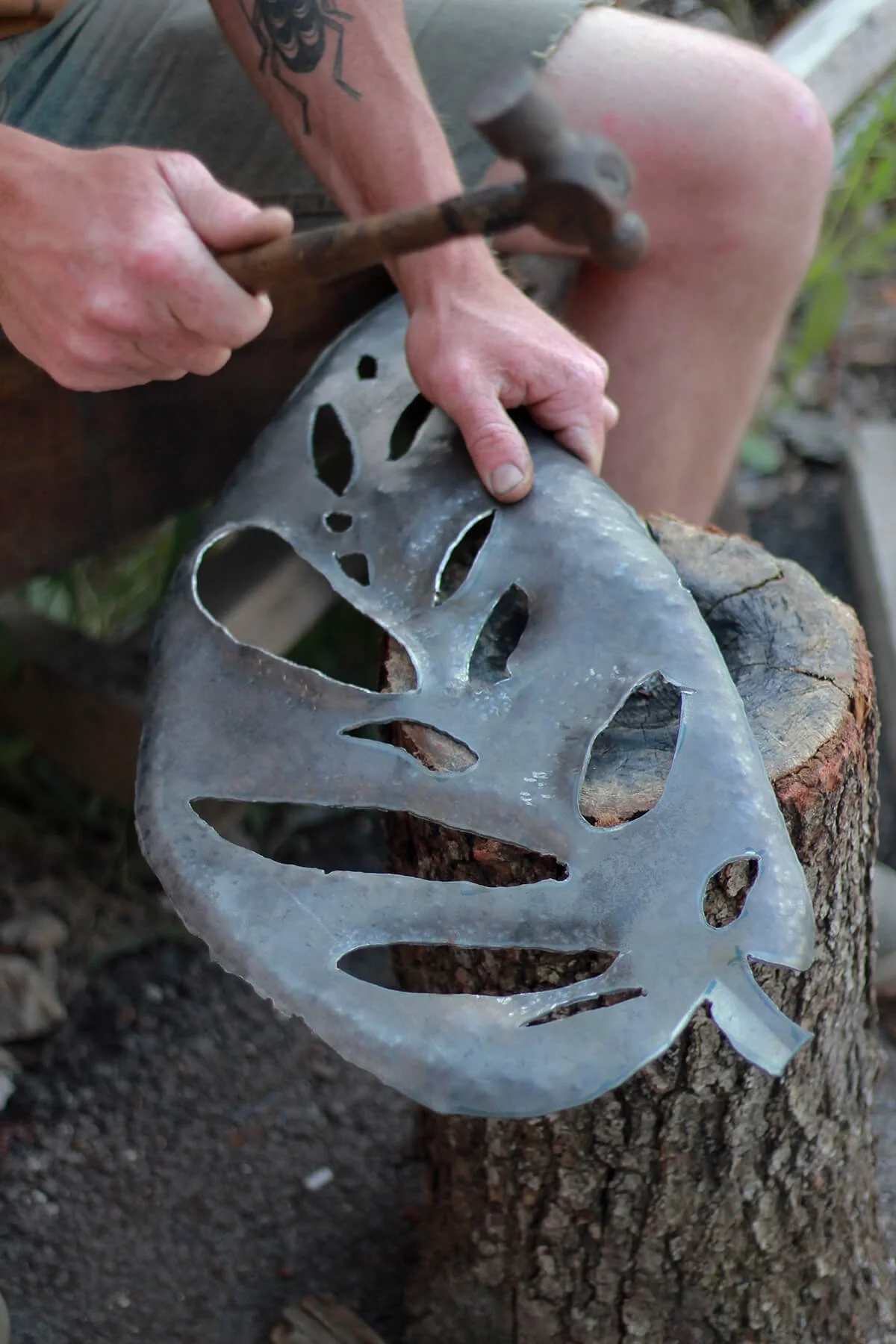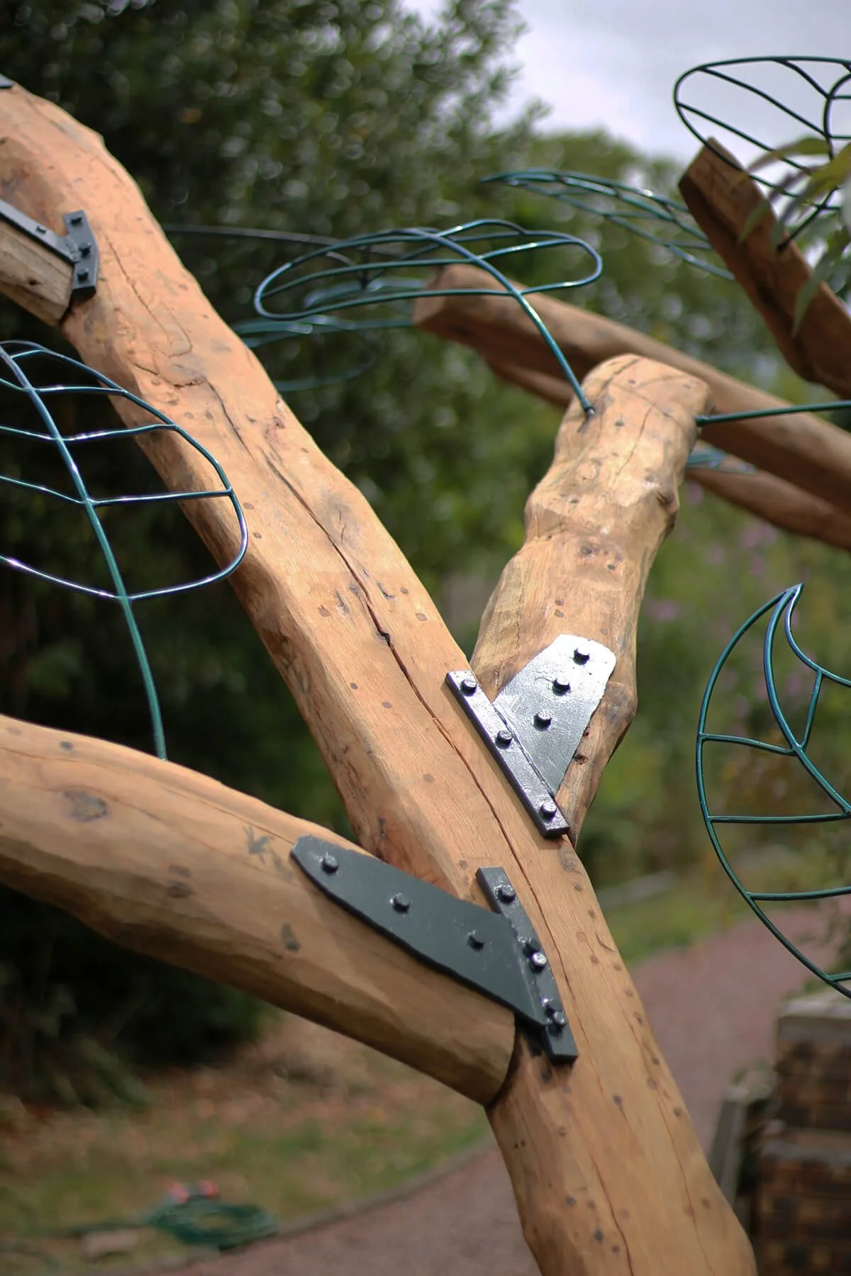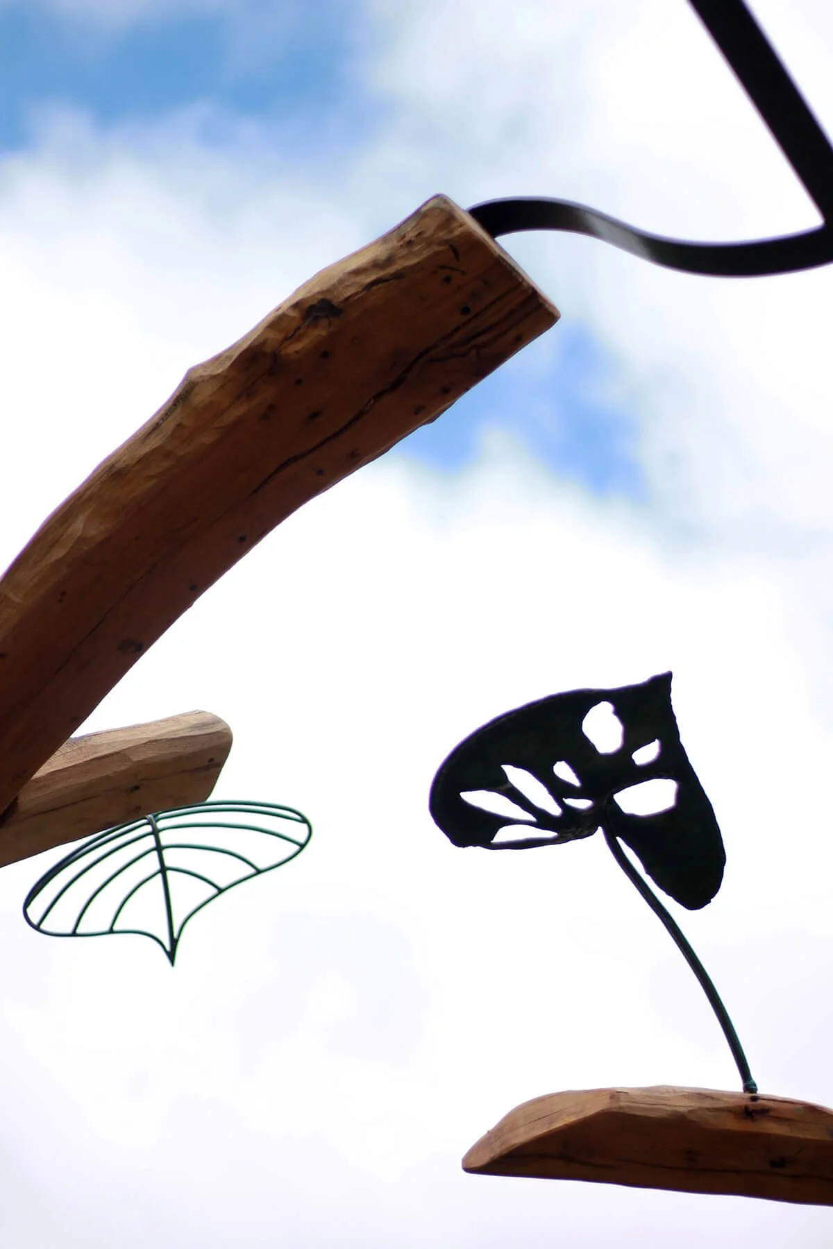 Les feuilles quant à elles sont réalisées en tôle et en rond d’acier, façonnées à la main, et mêlant différentes techniques de mise oeuvre traditionnelles.
